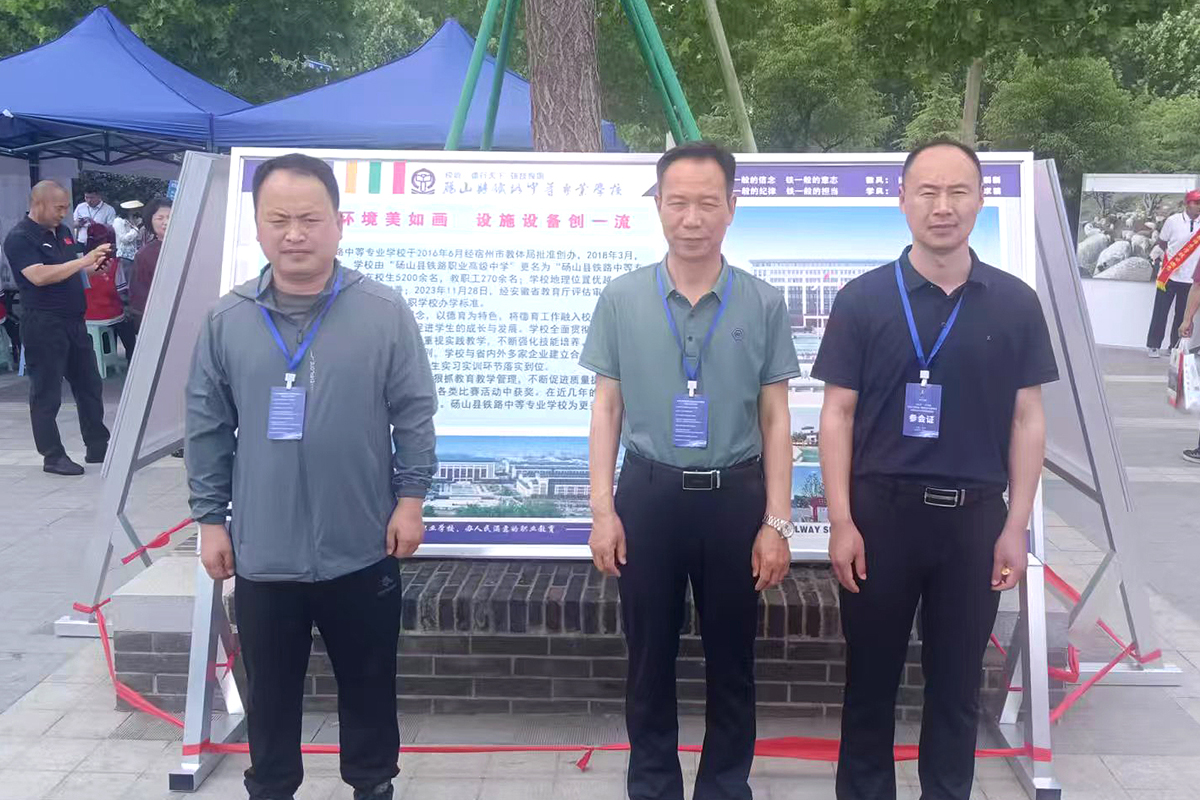 5月16日,宿州市2025职业教育活动周启动仪式宿州艺术中等专业学校胜利启动砀山铁路中专校长亲自带队参会学校提前设计制作了宣传展板摆放到萧县岱湖公园广场的指定位置,引来周边市民驻足观看。